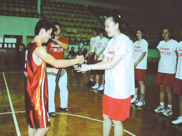當(dāng)天,在八一廣博文具女籃冠名簽約儀式結(jié)束后,八一女籃的姑娘們便在自家的訓(xùn)練營(yíng)里迎接遠(yuǎn)道而來(lái)的球迷們,同他們一起度過(guò)了一個(gè)難忘的下午。雙方互贈(zèng)禮品后,八一廣博文具女籃的姑娘們便同娘家球隊(duì)來(lái)了個(gè)友誼賽。為了表現(xiàn)一家人的概念,球技高超的女籃姑娘們照顧球迷們的業(yè)余水準(zhǔn),重新規(guī)定了本場(chǎng)比賽的規(guī)則。這規(guī)則一公布不禁讓球迷們笑開(kāi)了花,原來(lái)這別出心裁的規(guī)則要求女籃姑娘們不能在籃下投球,三分球投中也只能按兩分算。