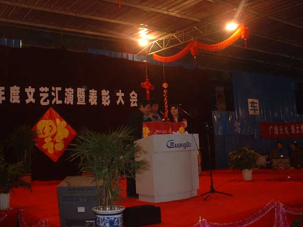 靈羊辭舊歲,金猴鬧新春。2月19日,廣博集團公司組織了2003年度文藝匯演暨表彰大會,這是集團公司給公司全體員工的一份新年大禮,會場四周張燈結(jié)彩,獎品整整圍了舞臺一圈,會場是一片喜慶……